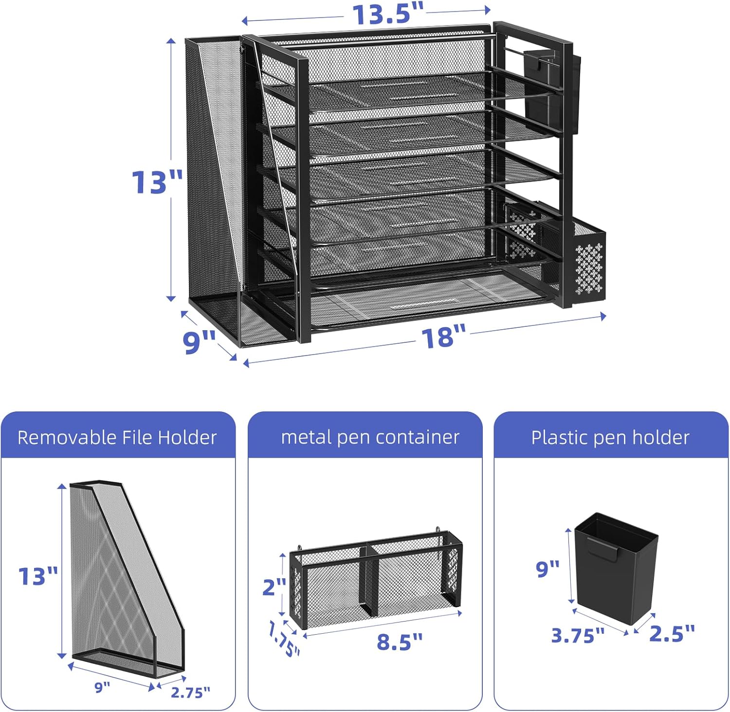 Large Capacity: This desktop organizer has 6 shelves, a vertical file organizer and 2 removable pen holders, all with plenty of storage space for a neat and organized desktop
