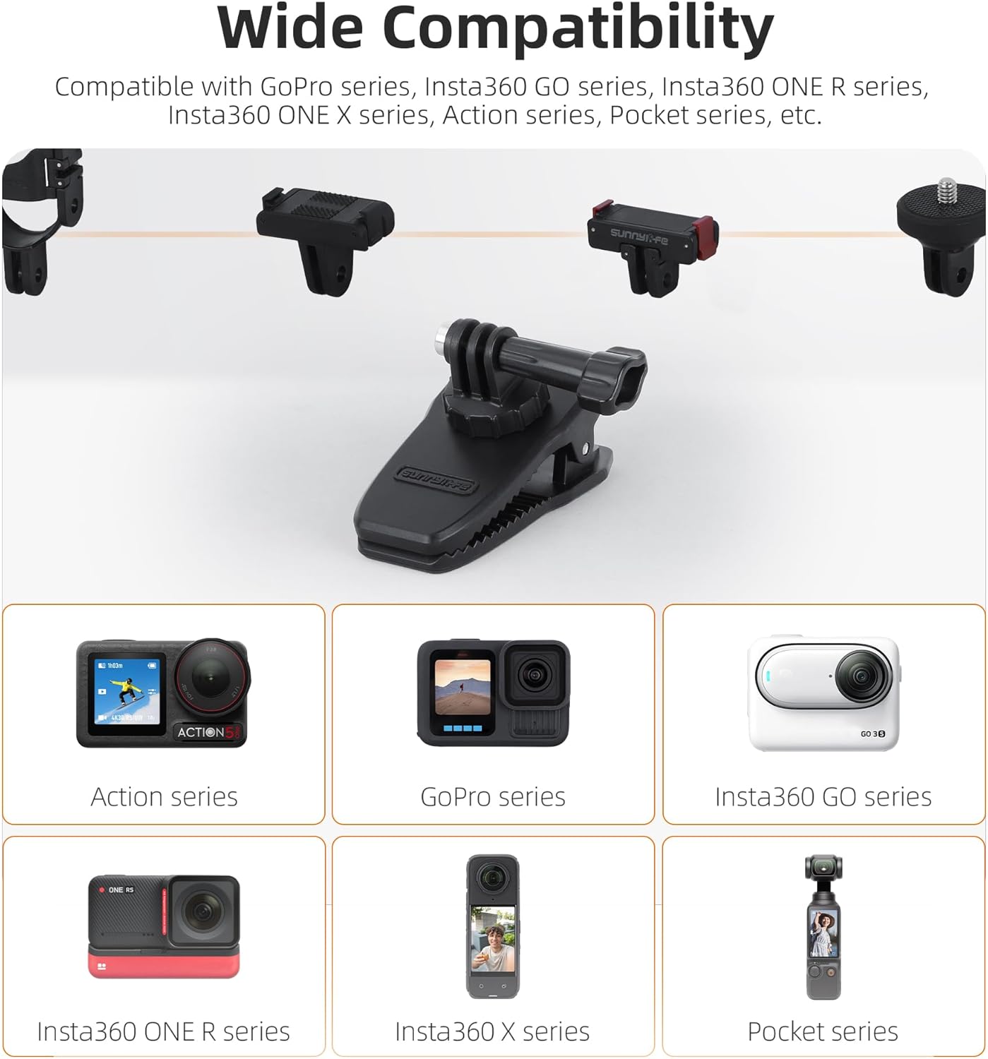 【Strong Grip and Stable】 Made of premium ABS, featuring multi-row alligator teeth and a reinforced spring mechanism. Perfectly clips onto backpack straps, car sun visors, bike seats, or other outdoor gear—no worry about camera slipping!