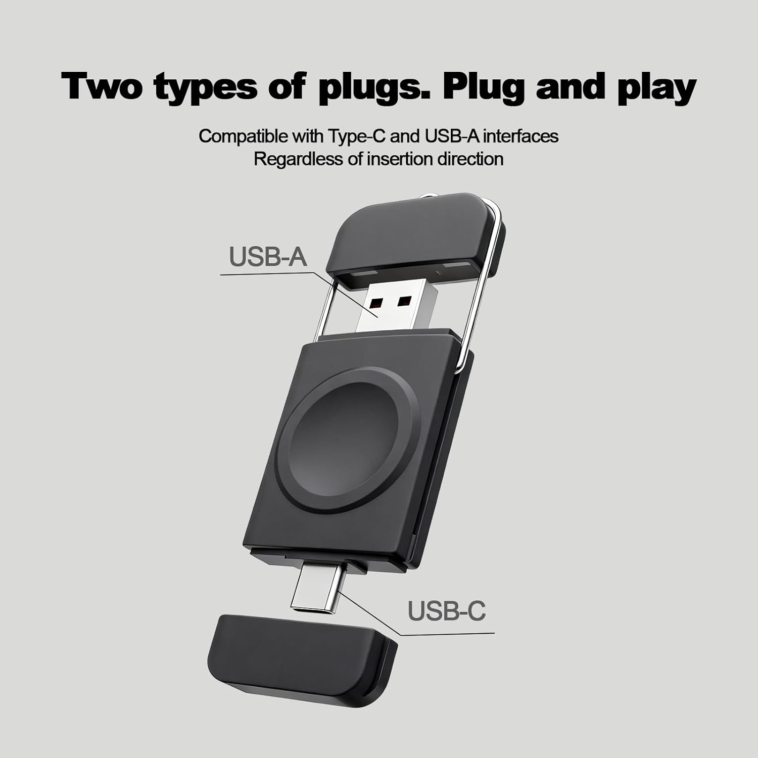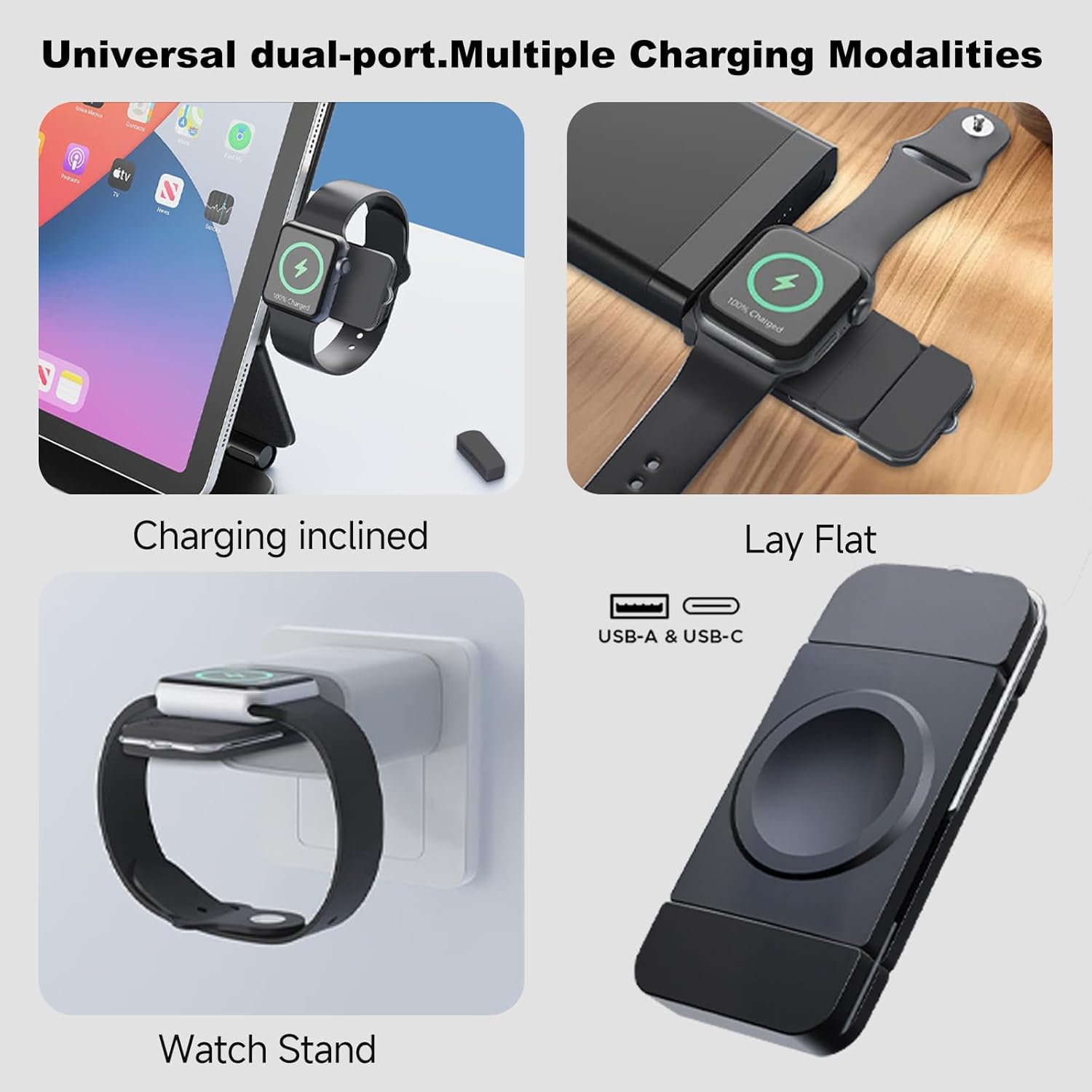 Portable Wireless Charger for Apple Watch Charger.USB C iwatch Charger.Travel Cordless Charger with USB A&C.Lightweight Magnetic Fast Charger for Apple Watch 10-1/Ultra/SE Series.Black