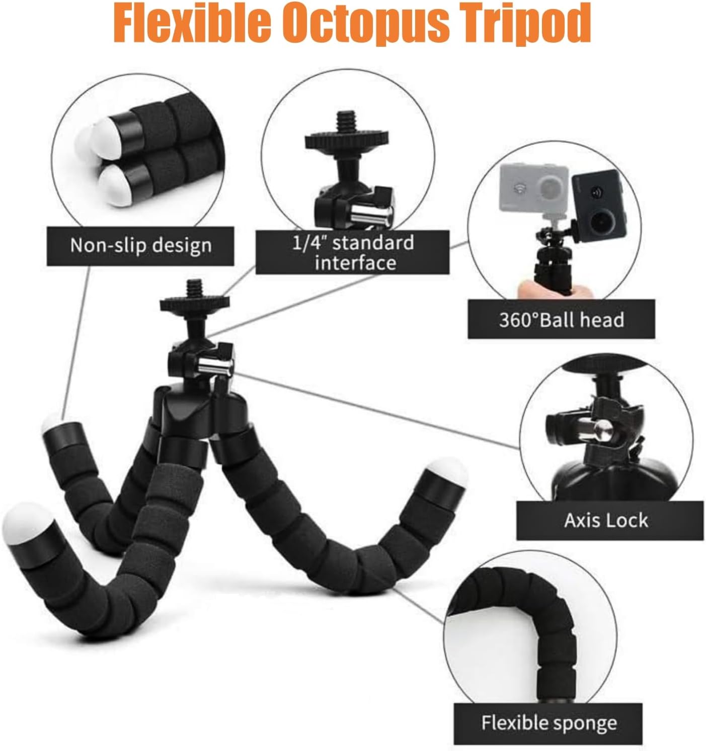 Lightweight Mini Tripod: The mini octopus tripod is compatible for action camera for maximum convenience. You can use it as a flexible tripod, or phone stand for reading, watching videos or during long phone calls or video calls