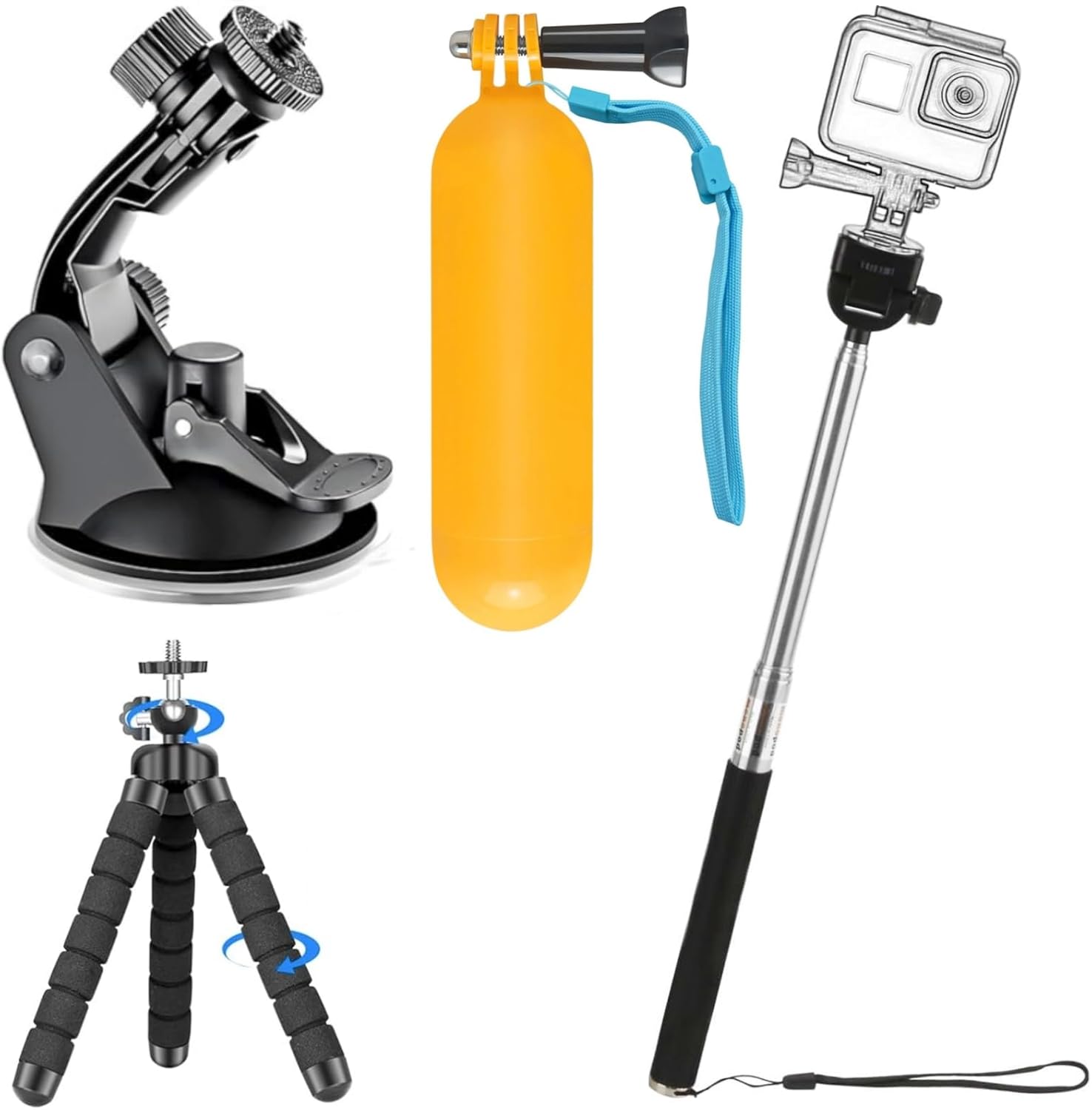 Package Included: 1 x suction cup, 1 x selfie stick, 1 x floating handle grip, 1 x octopus tripod, 3 x tripod adapter, 3 x long thumb screws, specially designed for first person perspective shooting