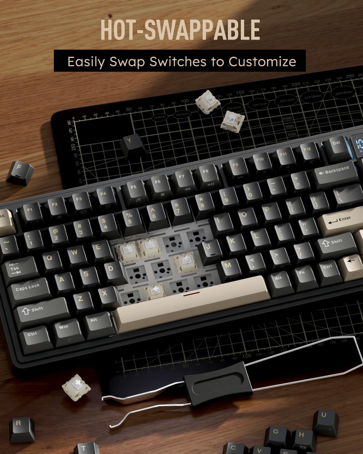 【Large capacity & 100% Hot Swappable】:Powered by an 8000mAh battery delivering up to 400 hours of use, it eliminates charging anxiety. This full-size keyboard retains a number pad, ideal for data-intensive tasks in finance and programming. The hot-swappable PCB supports both 3-pin and 5-pin switches, allowing effortless customization without soldering.