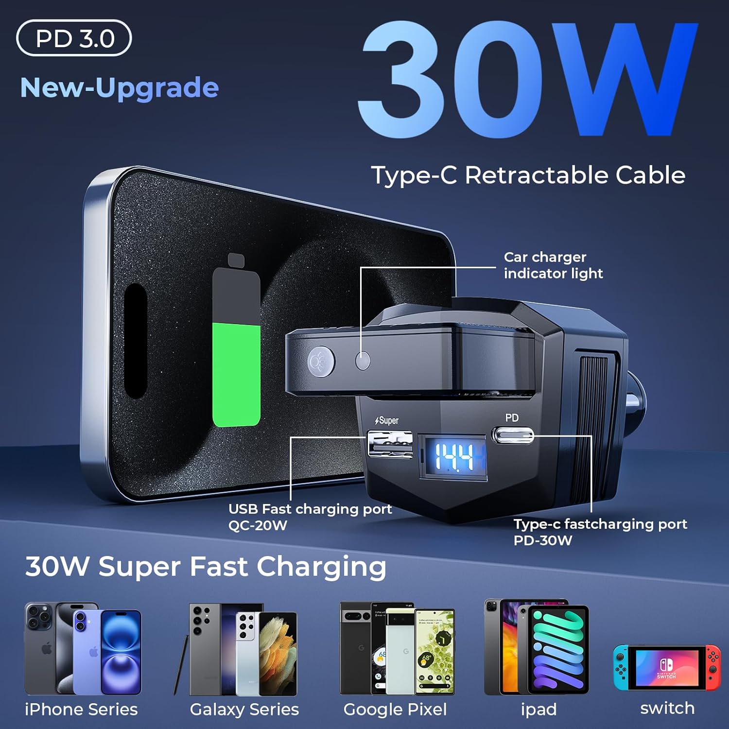 Fast Charger for Multi-Device Power: 3-port car charger includes a 30W PD USB-C port, 20W USB-A port, and removable power bank—ideal for rapid charging your iPhone 17 Pro Max or other gadgets. Versatile enough for truck accessories or stylish car essentials, with smart power allocation for high-speed charging across all ports.