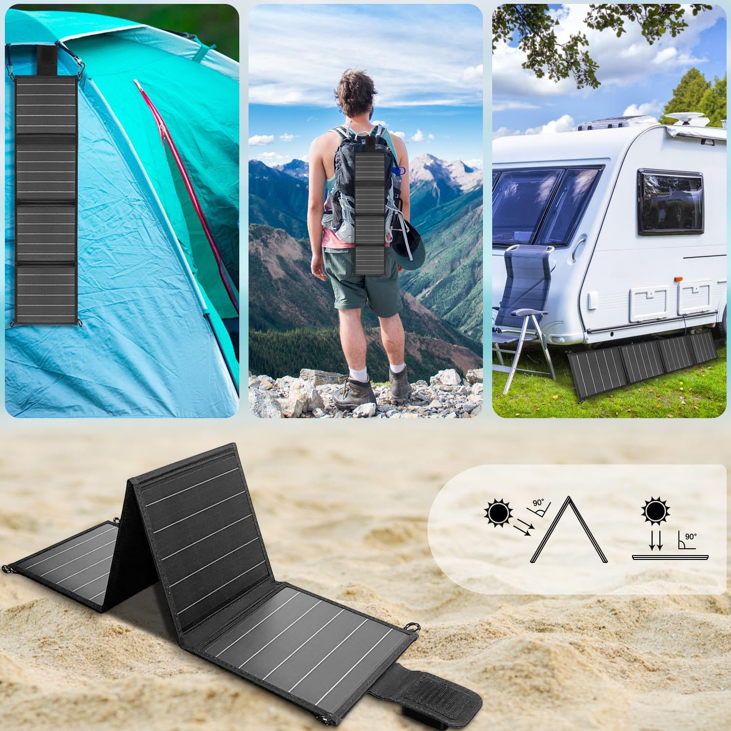 20W Portable Solar Panels Charger Foldable Solar Panel with Type C and USB A for Camping Backpacking Travel Fast Charging IP65 for iPhone,iPad,Power Bank,Camera,Power Station