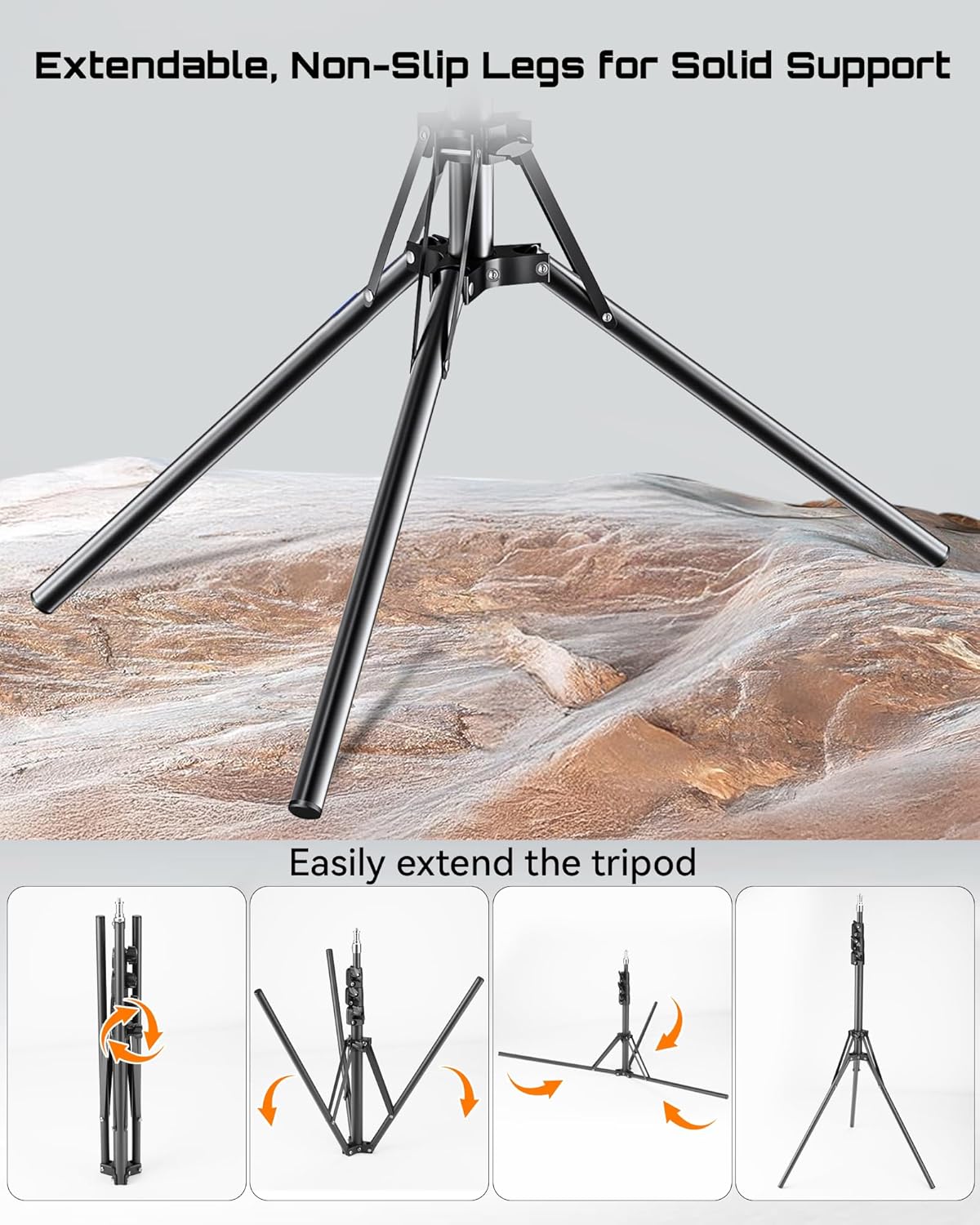 Heavy-Duty Adjustable Tripod Stand – Ultra-stable metal tripod extends from 23″ (desktop) to 70″ (floor standing) with anti-slip feet. Perfect for portrait photography, Zoom meetings, or beauty tutorials where stability matters