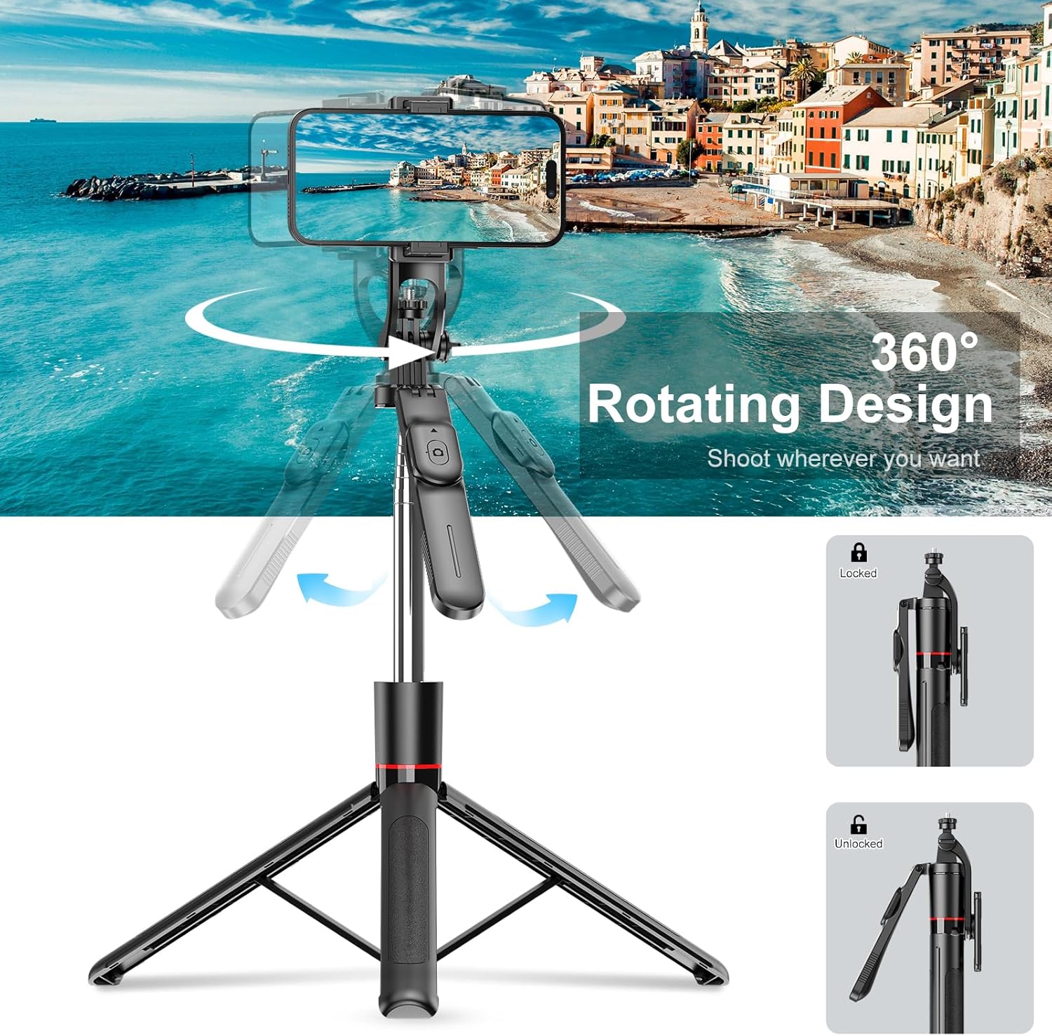 2-in-1 Tripod & Selfie Stick: Foldable tripod base ensures rock-solid stability on any terrain, freeing your hands for creative shots
