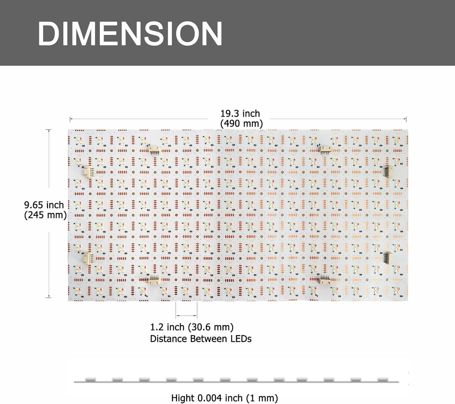 Bright & Uniform Illumination: 45W power with 512pcs 2835 LEDs, wide 120° beam angle, delivering smooth and even light. For best results, keep a 0.8–1.0 inch (2–2.5 cm) gap between the panel and the surface.