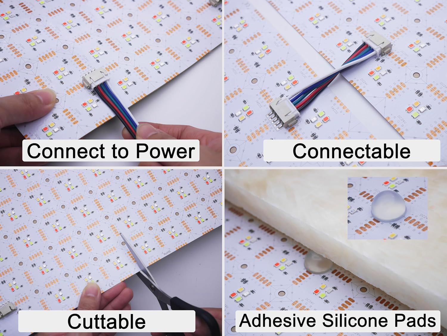 Cuttable & Linkable Design: Each panel can be cut into 1.2 × 1.2 inch (30.6 × 30.6 mm) sections, with quick-connect terminals for easy splicing and flexible installation. Works with all 24V constant-voltage power supplies and controllers (sold separately).