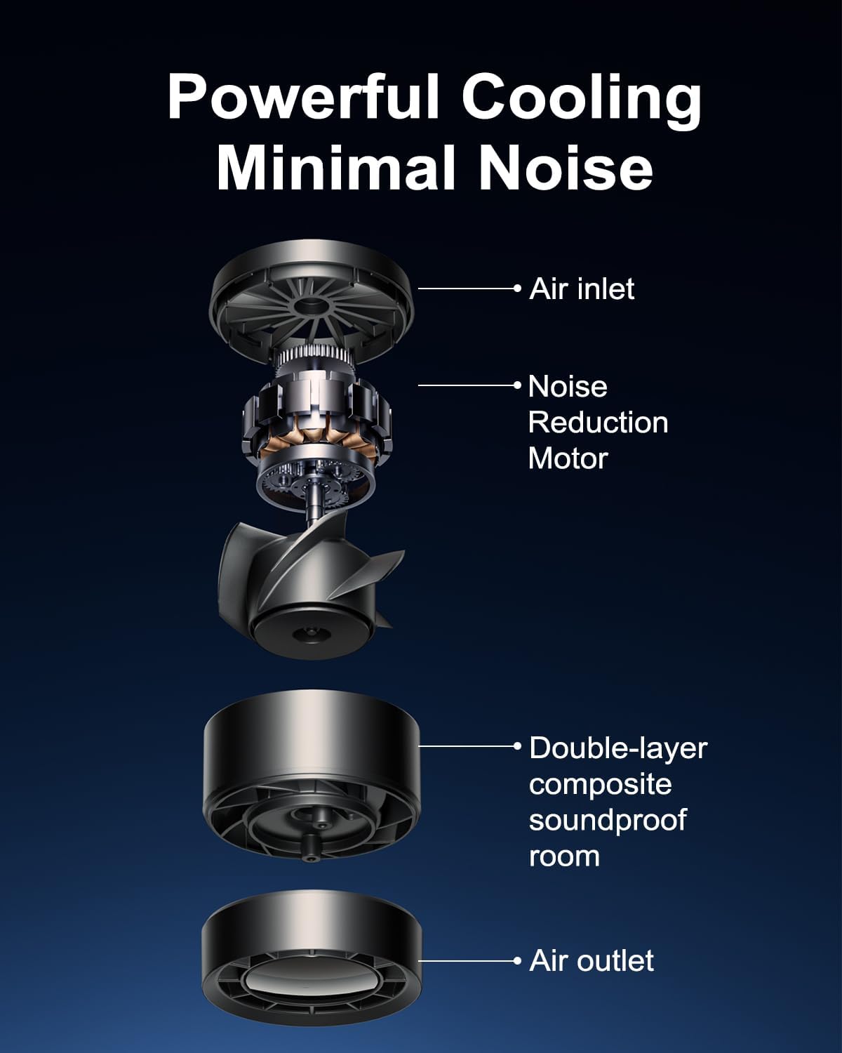 100-Speed Turbo Airflow – Customize your cooling from whisper-soft breeze to intense airflow with 100 wind levels and up to 50,000RPM rotation speed. You can adjust the turbo fan to meet your specific cooling needs in any situation.