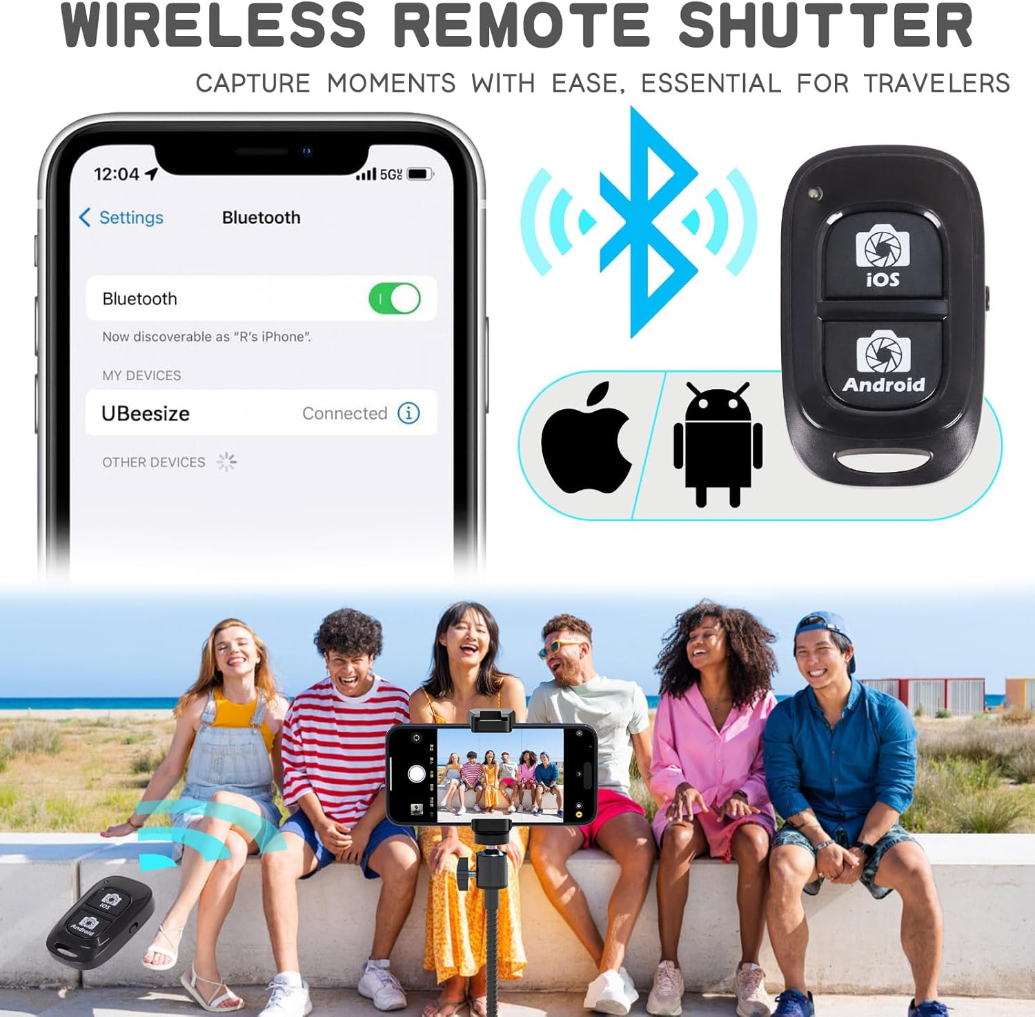 【Enhanced Versatility】The package includes an enhanced phone clip featuring a cold shoe mount designed for microphones and LED lights. Additionally, a wireless Bluetooth remote shutter is provided, offering an impressive range of up to 30 feet. This remote shutter is compatible with a diverse array of smartphones, ensuring seamless connectivity.