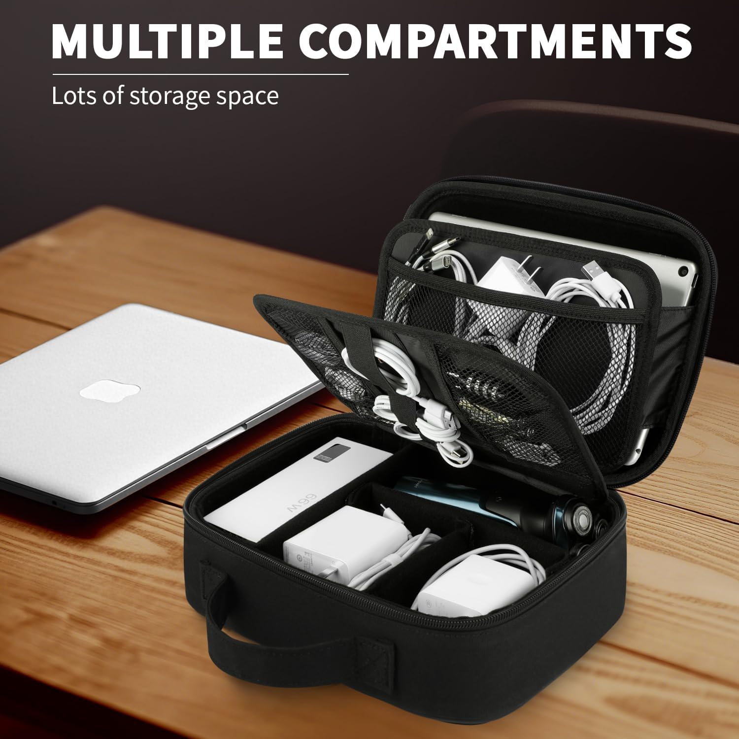 Portable & Tidy On-The-Go: The perfectly sized cable organizer bag slips effortlessly into your backpack, briefcase, carry-on luggage, or car glove compartment. This highly portable tech bag ensures your accessories stay neatly contained and instantly ready, eliminating tangled messes during commutes, flights, business trips, or daily errands. Experience convenience of having every cable, charger, and gadget perfectly organized in one sleek, grab-and-go tech organizer