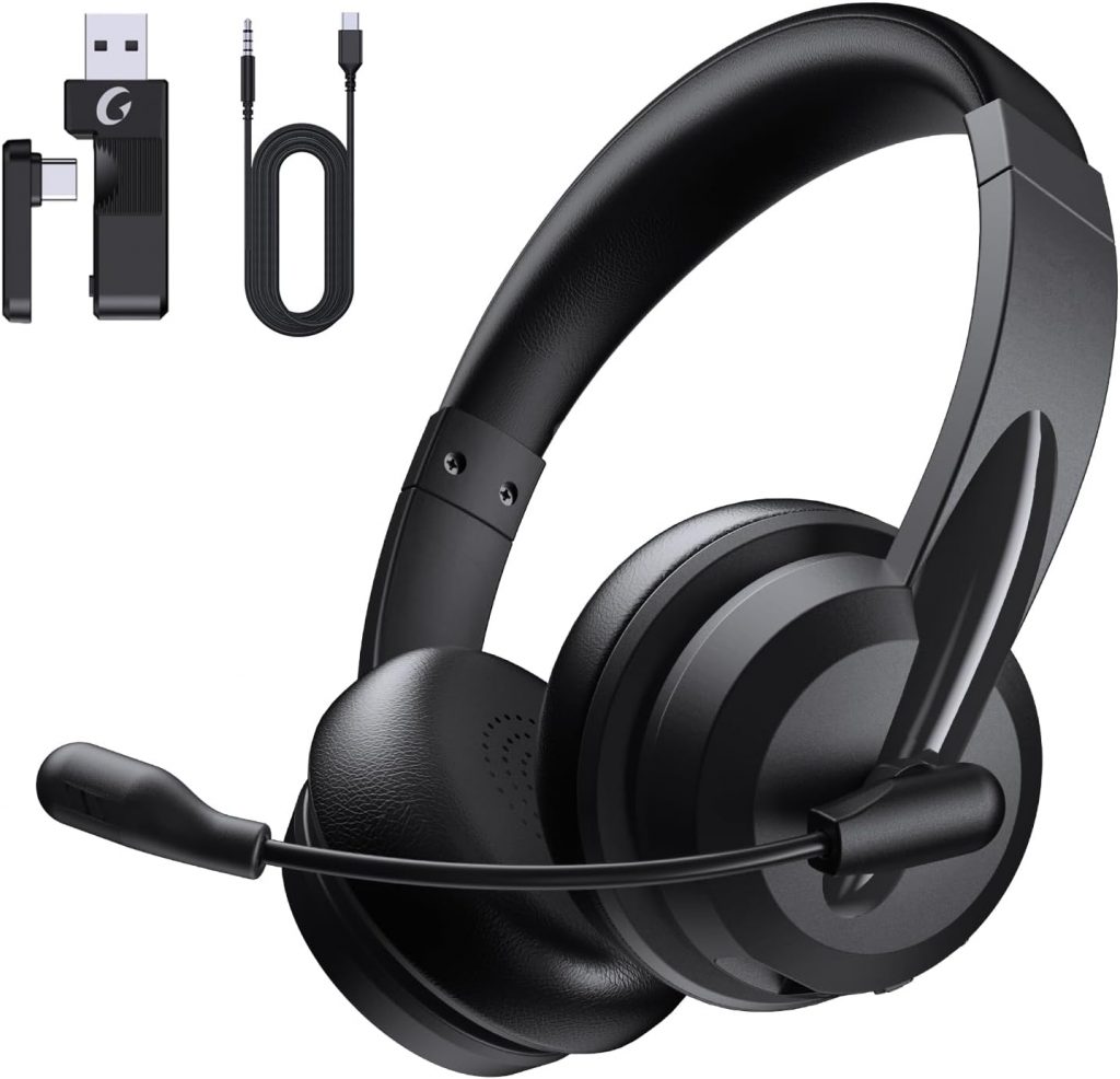 Wireless Headset with Mic for Work with AI Noise Cancelling Mic for Clear Calls, Bluetooth V5.3 Headphones with Microphone to USB A/C Dongle & Mic Mute for Computer Laptop PC iPhone (Black)