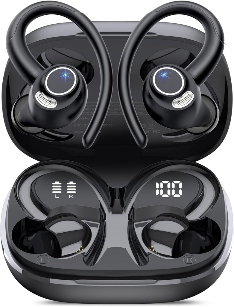 bmani Ear Buds Wireless Earbuds Bluetooth Headphones with 80H Playtime LED Display Case, Over-Ear Hook with Mic, Stereo Sound, Easy Button Controls, Sports Earphones for Running Workout Gym Green